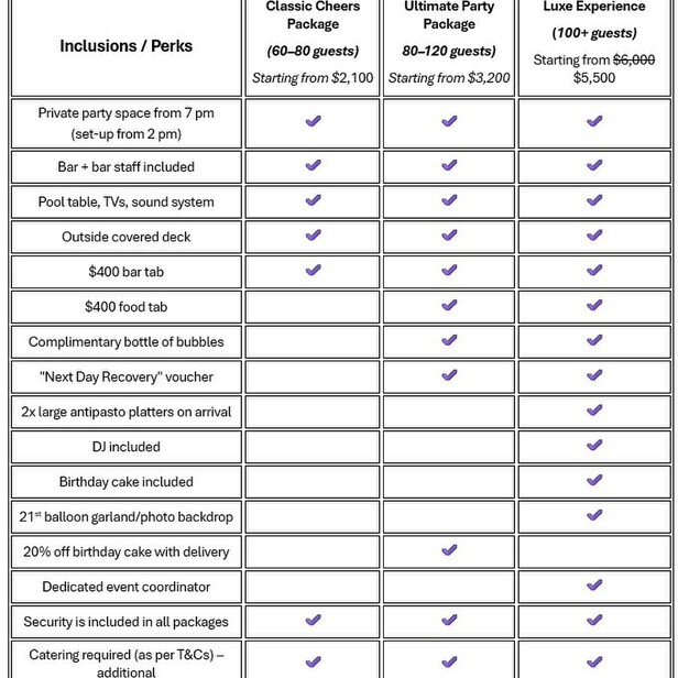 Whether you're after chill vibes or a full-on dance floor, we've got packages to suit. From tasty platters to birthday cakes to banging tunes — we’ll work with you to make it your kind of party.